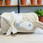 Hermosa toalla bordada con orejitas, confeccionada con el más puro algodón peruano en formato de regalo con cinta.