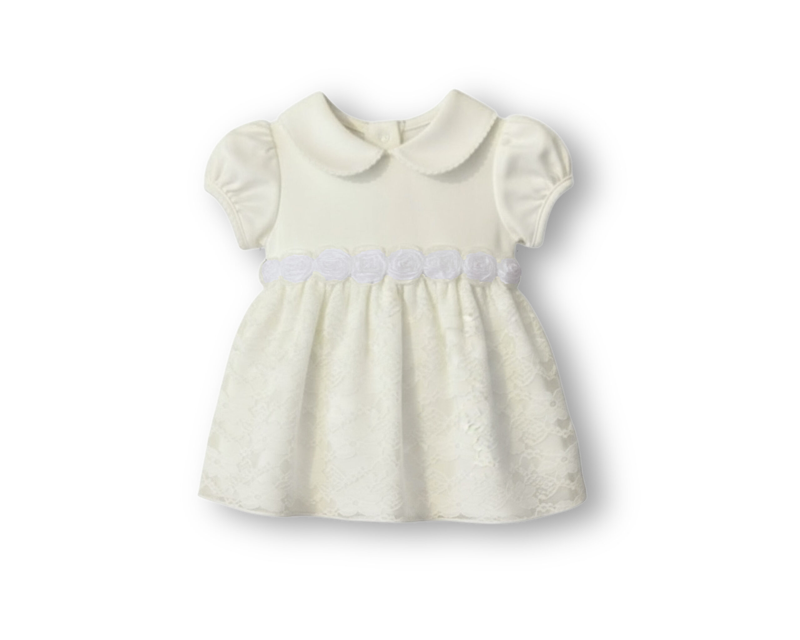 Hermoso y delicado vestido corte canesú, manga corta. Su pieza superior e interior es 100% Algodón Pima, lo que protege a tu bebé de las alergias, manteniéndola fresca y evitando los excesos de sudoración.