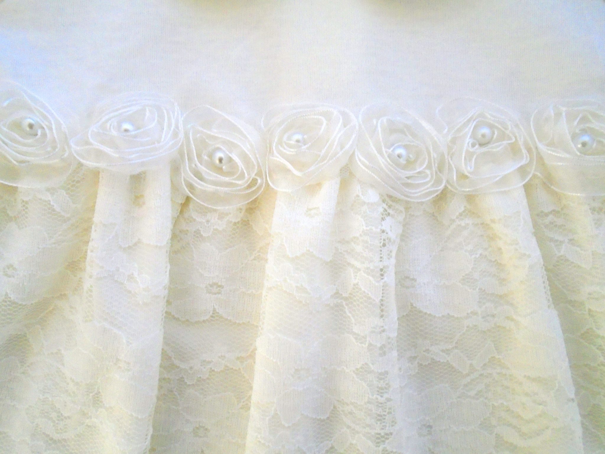 Con una hermosa y femenina aplicación de flores con perlitas y encaje, ideal para ocasiones especiales como bautizos, matrimonios, fiestas o simplemente en aquellas que quieras que luzca como una princesita.